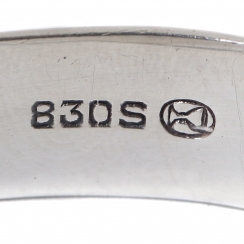 Length: 5.2 cm, width: 3.5 cm, maximum height: 1.4 cm. Weight: 16 grams of silver 830 fineness.