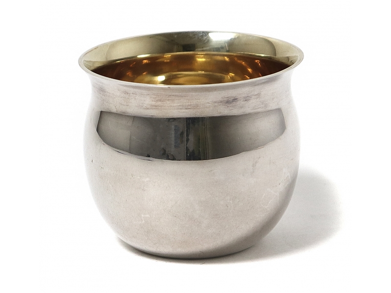 Height: 5 cm, diameter of the top: 5.5 cm. Volume: 70 ml. Weight: 59 grams of silver 830 fineness.