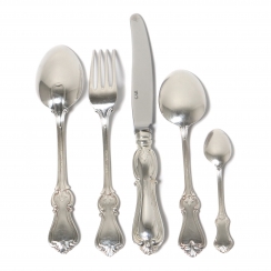 Набор небольших серебряных столовых приборов на 6 персон, 30 предметов. Дизайн "Ольга" (Olga).