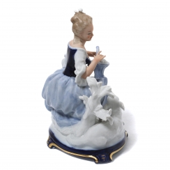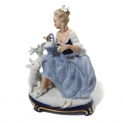 Без сколов, повреждений и без реставраций. ================================ Porcelain figurine "Girl with a basket of flowers and a Lamb". Rare version painted with cobalt. Hand painted.