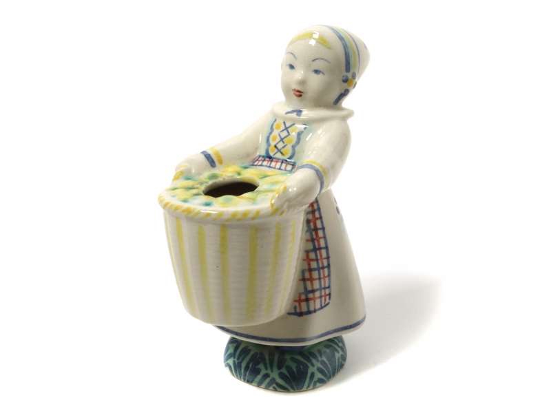 Фаянсовая фигура (подсвечник) "Кузина из Амагера (Девочка с корзиной)" из серии "День защиты детей". В стиле Herluf Jensenius. Ручная роспись.