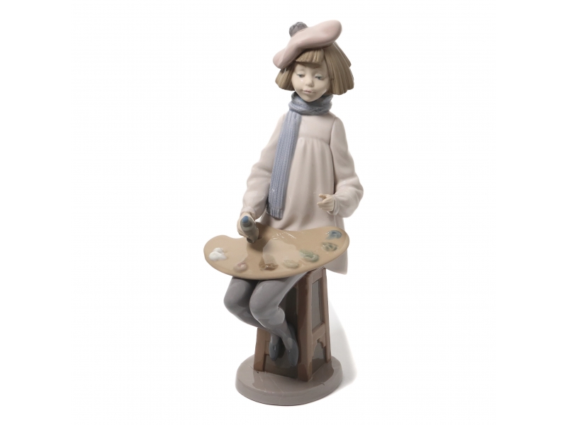 Приклеена голова, правая кисть руки, основание. ============================== Porcelain figurine "Boy with palette". Hand-painted underglaze.