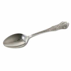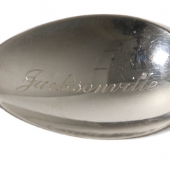 Серебряная сувенирная чайная ложка "Город Джексонвилл, Флорида" с изображением пальмы, корабля и фигуры и надписью "Мы верим в Бога".