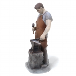 Фигура произведена в короткий период начала объединения фабрик Royal Copenhagen и Bing & Grondahl (примерно в 1985 году), промаркирована номером модели фабрики Bing & Grondahl, которая изначально её выпускала с номером 2225. Позже всем фигурам, выпускавшимся объединенными фабриками, были присвоены новые номера моделей. Этой фигуре после объединения фабрик (1985-1989 гг.) был присвоен номер 460 под брендом Royal Copenhagen. Такая же фигура выпускалась фабрикой Royal Copenhagen в технике stoneware. ======================== Porcelain figurine "Smith". Hand-painted underglaze.