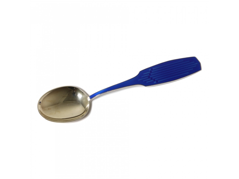 Клеймо дизайнера. «A.MICHELSEN Sterling Danmark» - клеймо, удостоверяющее, что изделие произведено в датской мастерской Антона Михельсена, поставщика Датского королевского двора, из стерлингового серебра. С 1910 года именитый датский производитель столового серебра A.Michelsen выпускает каждый год так называемую Christmas Spoon, а также десертные наборы, состоящие из ложки и вилки, которые традиционно датчане, да и не только, включают в рождественские подарки близким. Авторами дизайна становятся наиболее именитые датские дизайнеры, художники, скульпторы. ================================== The Danish сollection annual dessert spoon "Organ Pipes". Silver, gilding, enamel.