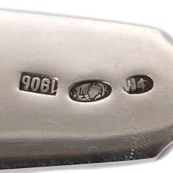 Length: 21.3 cm. Weight: 75 grams of silver 84 fineness in zolotniki ( = 875 metrical fineness).