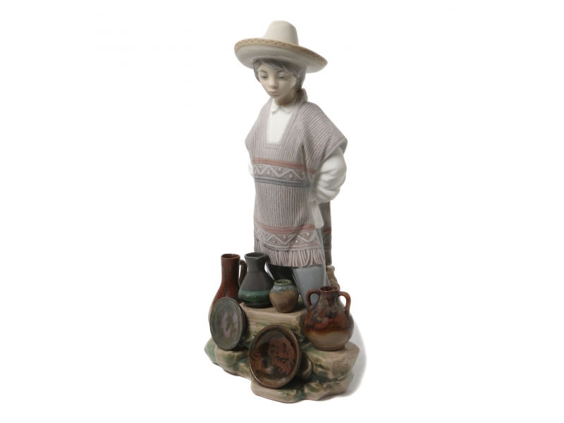 Фарфоровая фигура (статуэтка) "К югу от границы" (Мальчик - мексиканец, продающий керамическую посуду). Ручная подглазурная роспись.