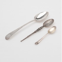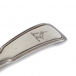 С вензелем. =========================== Silver spoon for mustard (spice or salt).