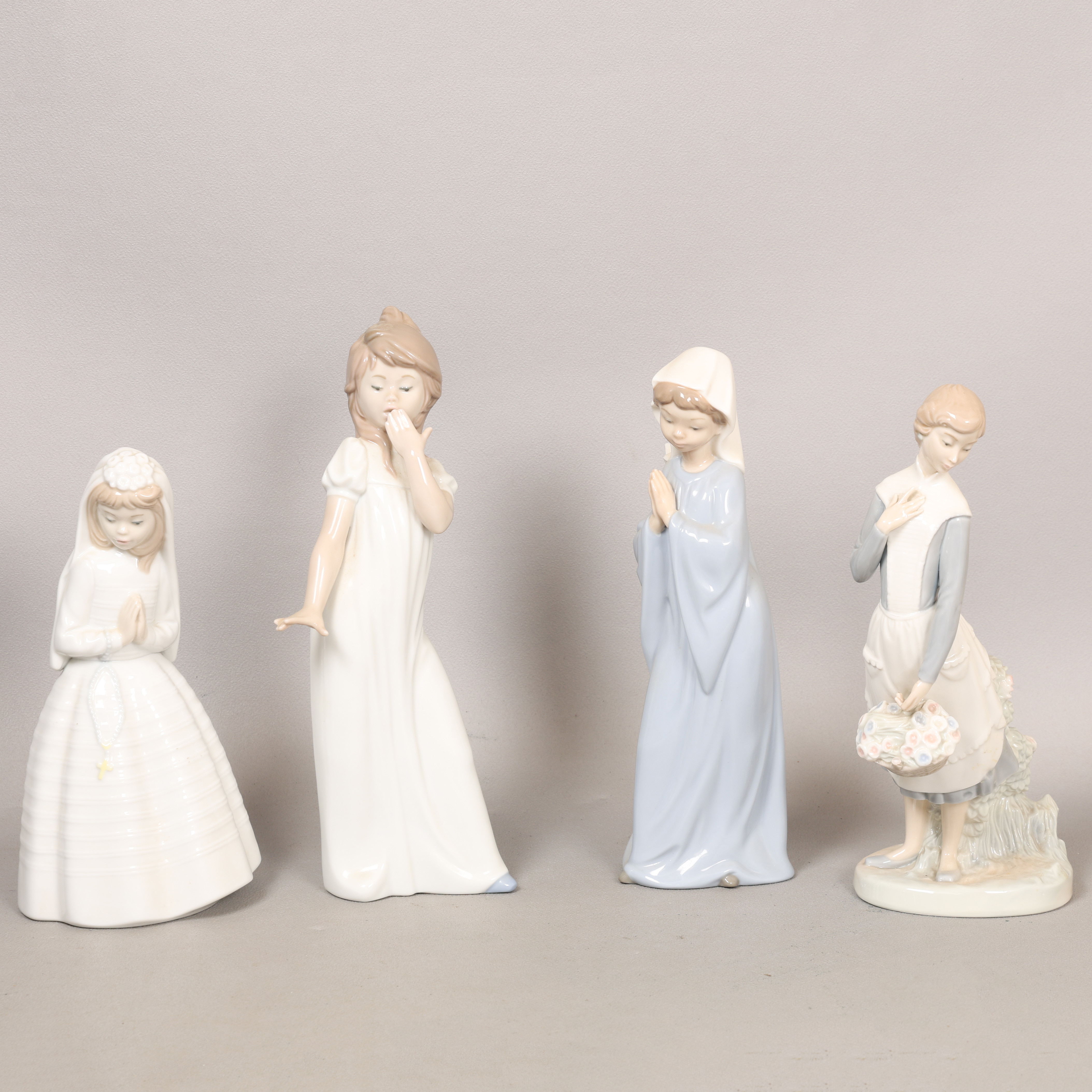 Информация о лоте 301919 - Девушка с корзиной цветов, высота 26,5 см, основание 11 х 9 см, Испания, Lladro 383171 - Зевающая девочка, NLL_02000230 326546 - Невеста, NLL_02000236 342845 - Молящаяся, высота 27,5 см, длина 9 см, ширина 7,5 см, Испания, NAO by Lladro |