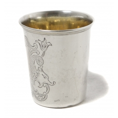 257655 - Чарка, 36 гр, 830 пр, высота 3,8 см, диаметр верха 6,6 смЧарка, 36 гр, 830 пр, высота 3,8 см, диаметр верха 6,6 смвмятинки на боковом ребре основания
