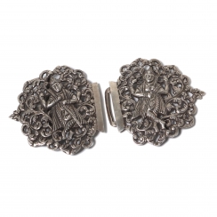 Максимальные размеры: 13 х 7 см. Вес: 59 граммов серебра 925 пробы. ======================== Silver belt buckle with 5.3 cm wide.
