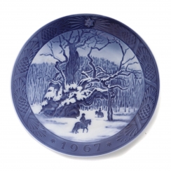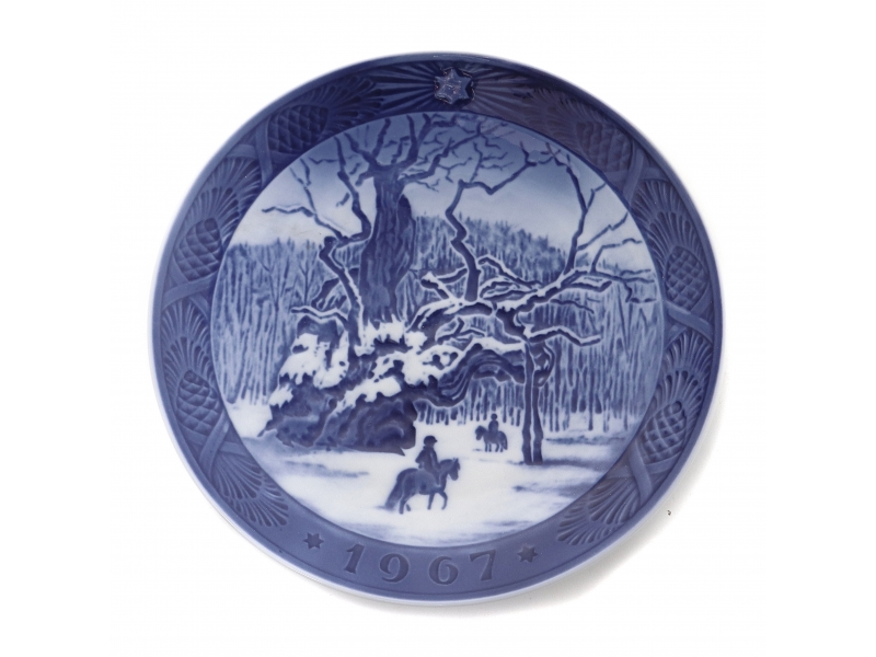 Коллекционная фарфоровая тарелка 1967 года "Королевский дуб возле Егерсприса" (Kongeegen ved Jaegerspris i sne) из серии годовых рождественских тарелок.