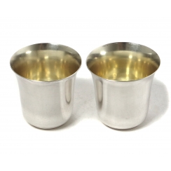Высота: 5 см, диаметр верха: 5 см. Объём: 50 мл. Вес: 46 граммов серебра 830 пробы. =============================== Silver vodka cups (shot cups), 2 pcs.