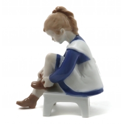 Фарфоровая фигура (статуэтка) "Марианна. Девочка завязывает шнурки". Ручная подглазурная роспись.