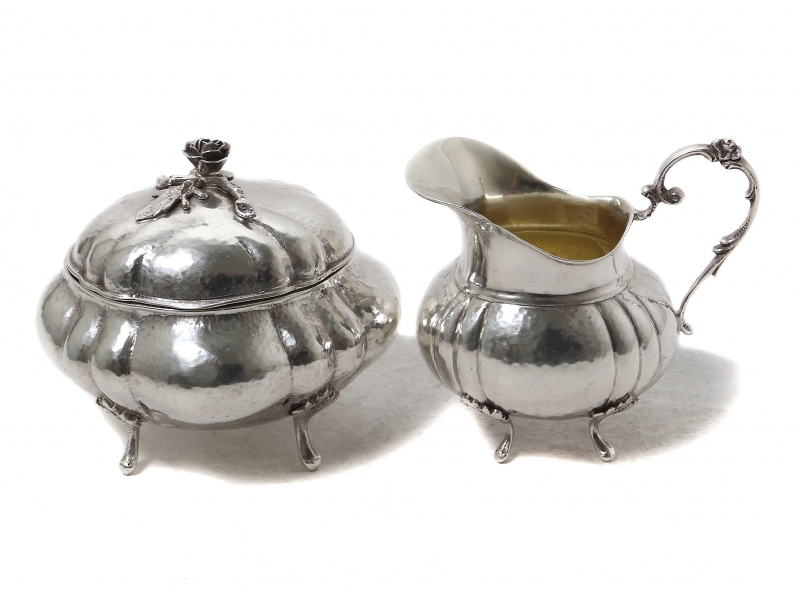 Общий вес: 325 граммов серебра 830 пробы. ============================ Silver sugar bowl and creamer (milk jug), decorated using forging technique.