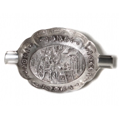 264560 - Серебряная банкетная пепельница. ГолландияСеребряная банкетная пепельница, декорированная сюжетной миниатюрой.