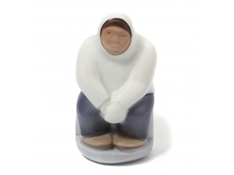 Фарфоровая фигура (статуэтка) "Сидящий гренландец". Ручная подглазурная роспись.