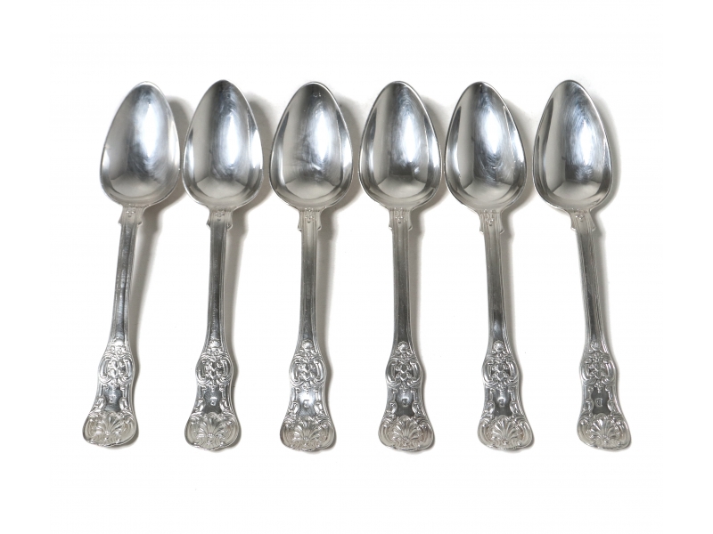 Небольшие серебряные обеденные ложки, 6 шт. Дизайн "Kings Pattern".
