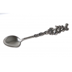 Серебряная сувенирная кофейная ложка "Бремен", декорированная фигурой бременских музыкантов по мотивам одноименной сказки братьев Гримм.