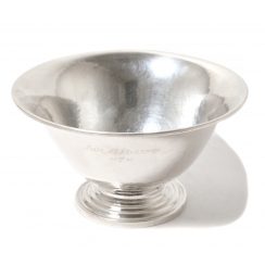 Высота: 9,5 см, диаметр верха: 17 см. Вес: 242 грамма серебра 830 пробы.