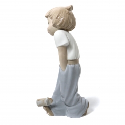 Фарфоровая фигура (статуэтка) "Уличная игра" (Мальчик с консервной банкой). Ручная подглазурная роспись.