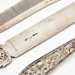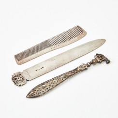 Информация о лоте 389162 - Нож для бумаги, писем, конвертов, 19,5 см, 79 гр, 830 пр, ширина 2,5 см 329643 - Посеребренный нож для бумаги, писем, конвертов, 16,5 см, максимальная ширина полотна 2,9 см 377406 - Серебряная расческа. Швеция, 1866 год. |