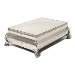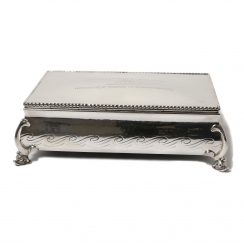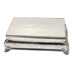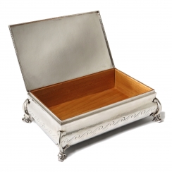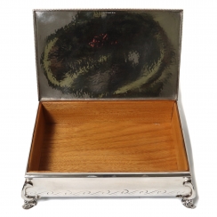 Серебряная коробка (шкатулка) с внутренней деревянной отделкой.
