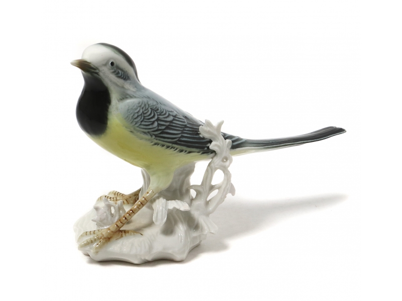 Фарфоровая фигура (статуэтка) "Трясогузка". Ручная подглазурная роспись.