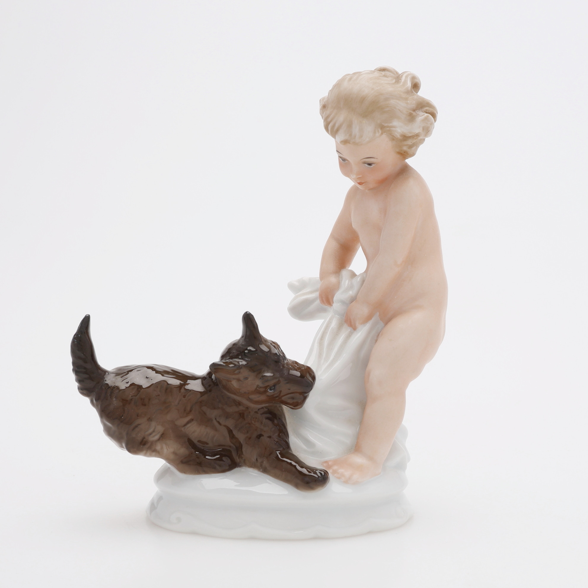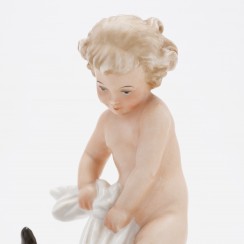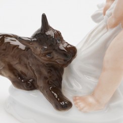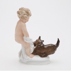 290755 - Путти, играющий с терьером, высота 15 см, основание 9 х 6 см, Германия, Розенталь |
