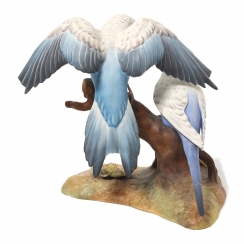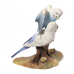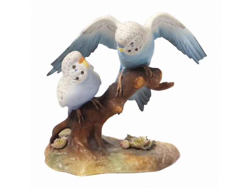 Фарфоровая фигура (статуэтка) "Пара голубых волнистых попугаев" (Два попугая). Ручная роспись.