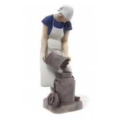 Фарфоровая фигура (статуэтка) "Девушка, переливающая молоко". Ручная подглазурная роспись.
