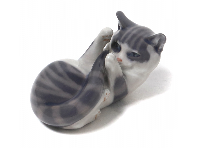 Фигура производилась также после объединения фабрик Royal Copenhagen и Bing & Grondahl (1985-1989) под брендом Royal Copenhagen, номер модели: 071. ============================== Porcelain figurine "Cat Playing". Hand-painted underglaze.