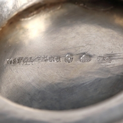 Height of the grip on the lid: 23 cm. Volume: 1300 ml. Weight: 892 grams of silver 830 fineness.