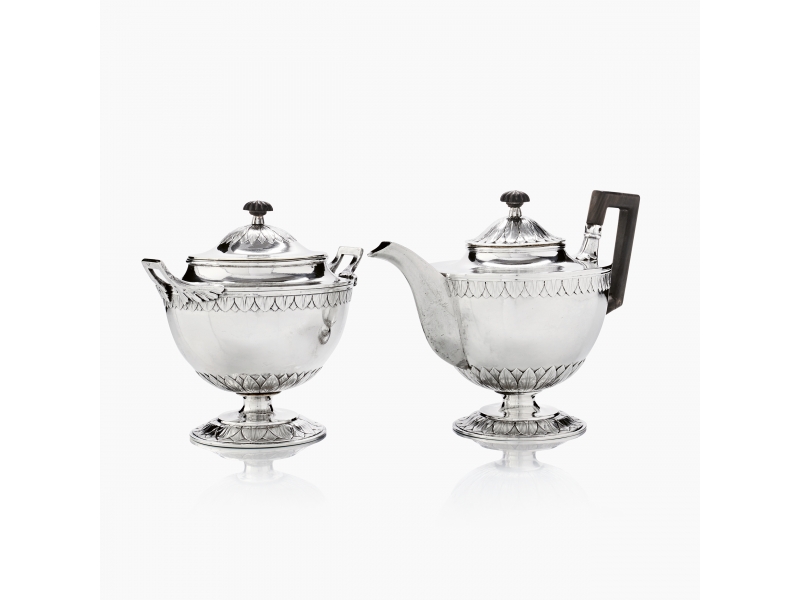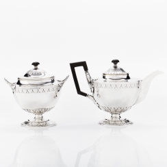 Серебряный чайник и сахарница.