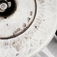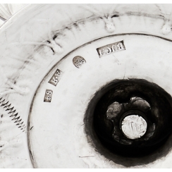 The Russian hallmarks 18th century: "А.Я" - инициалы пробирного мастера Яшинова Александра Ильича (годы работы: 1795-1826); "84" – the fineness mark (84 zolotniks = 875). Year-old mark "1799", indicating the year. "Two anchors, laid crosswise and scepter" – the Petersburg city mark.