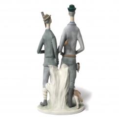 Без сколов, повреждений и без реставраций. ============================== Porcelain figurine "Two hunters with a dog". Hand-painted underglaze.