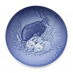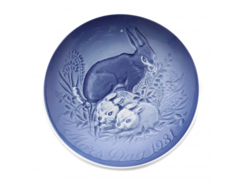 Настенное фарфоровое блюдце "Заяц с зайчатами" (Hare med killing). из серии "День матери".