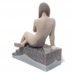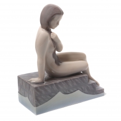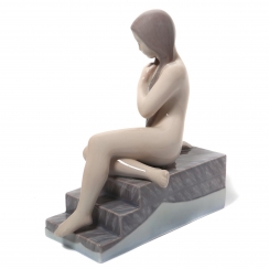 Фарфоровая фигура (статуэтка) "Обнаженная девушка на ступеньках". Ручная подглазурная роспись.