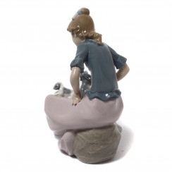 Без сколов, повреждений и без реставраций. ============================== Porcelain figurine "Tendercare (Girl with puppies)". Hand-painted underglaze.