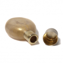 Максимальные размеры: 13,7 х 8,4 х 4 см. Размеры крышки-стопки: высота 3,7 см, диаметр 3,8 см. ==================== Pocket hip flask (whiskey bottle). Glass, silver of 950 fineness. The glass is decorated with a gilded coating that imitates craquelure.