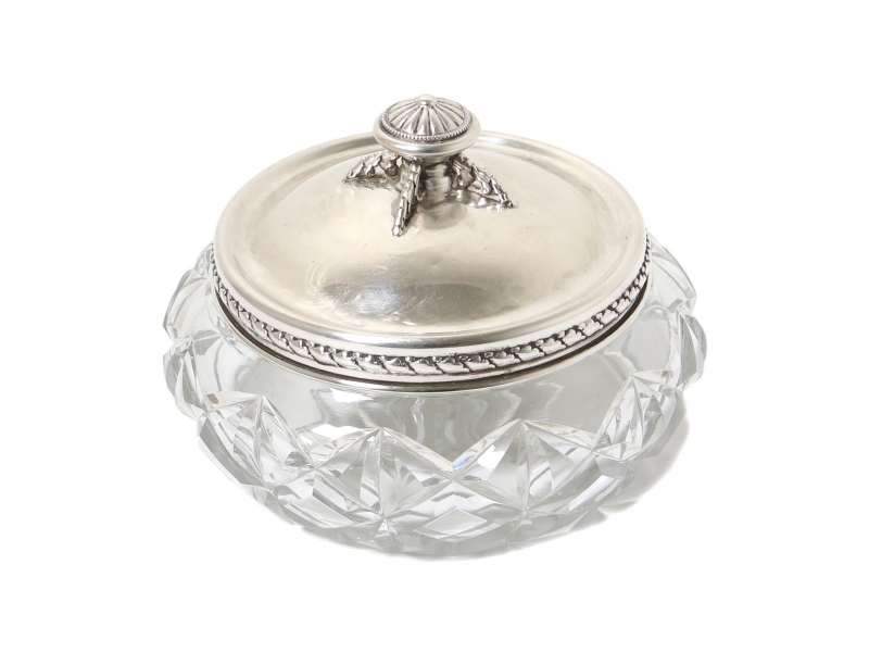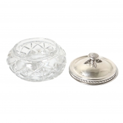 Хрустальная сахарница (ваза) с серебряной крышкой.