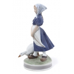 Фарфоровая фигура (статуэтка) "Пастушка" (Девочка с гусем). Ручная подглазурная роспись.