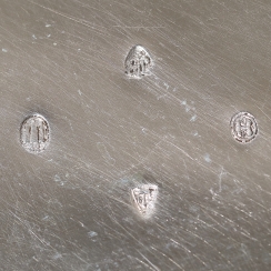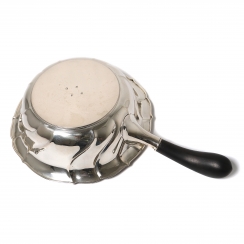 Ladle top diameter: 20.3 cm, ladle height: 6.2 cm, handle length: 12.5 cm. Volume: 850 ml. Weight: 385 grams, silver of 826 fineness.