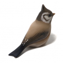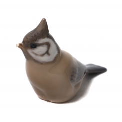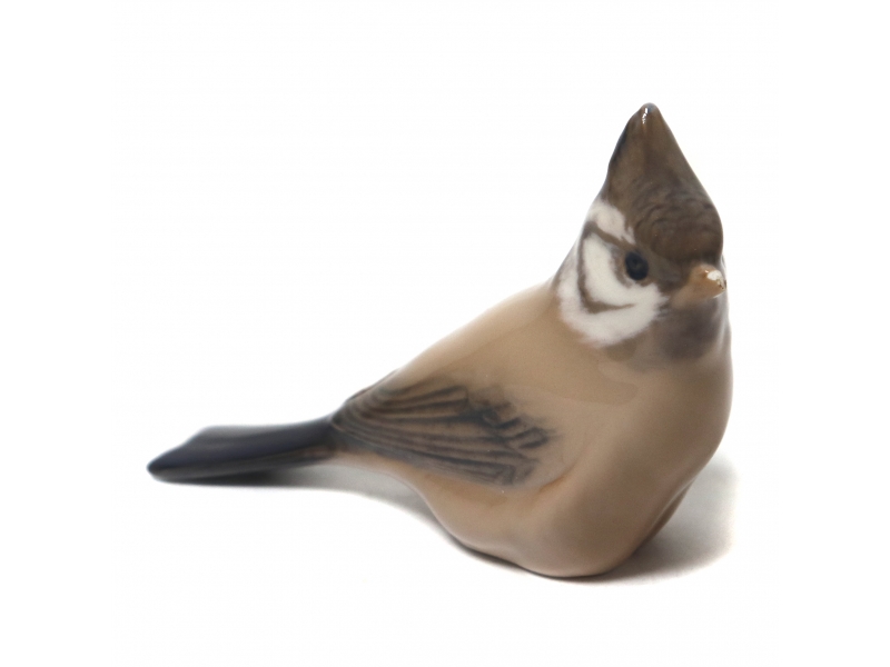 Статуэтка второго сорта. Cкол на кончике клюва. ============================= Porcelain figurine "Crested tit". Hand-painted underglaze.