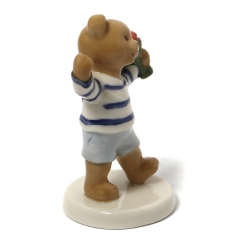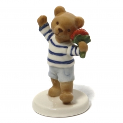 Годовая фарфоровая фигура (статуэтка) "Медвежонок Тэо с букетом" из серии о семье плюшевых медведей Виктора и Виктории. В оригинальной коробке.