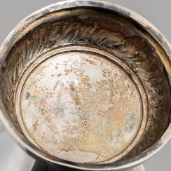 Height: 14 cm, diameter the of top: 10.5 cm. Volume: 350 ml. Weight: 141 grams of silver 830 fineness.