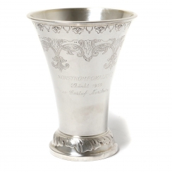 С гравировкой. Был первым призом за какие-то соревнования. ============================== Silver beaker (cup).