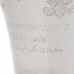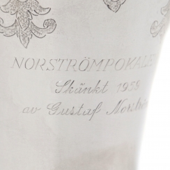 A slight dent on the edge of the base. There is engraving "Norström Pokalen I Lkankt 1959 av Gustav Nordström".