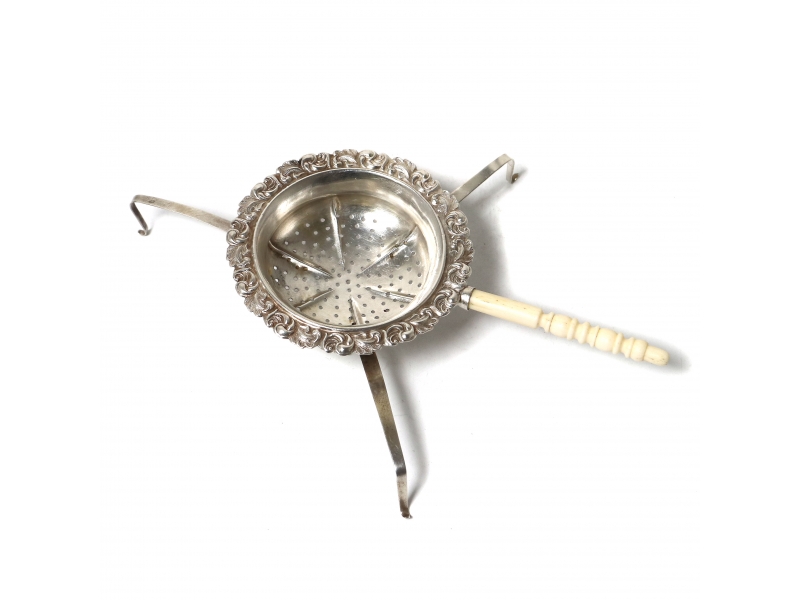 294213 - Ситечко, 31 гр, 830 пр, длина (без ножек) 14,5 см, длина ножек 7 см, диаметр 7,5 см