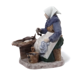Фарфоровая фигура (статуэтка) "Рыбная лавка". Ручная подглазурная роспись.